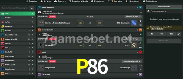 A aposta P86 oferece aos jogadores a experiência mais conveniente de apostas em eSports!